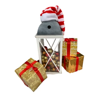 Lámpás karácsonyi gömbbel, ajándékdobozzal